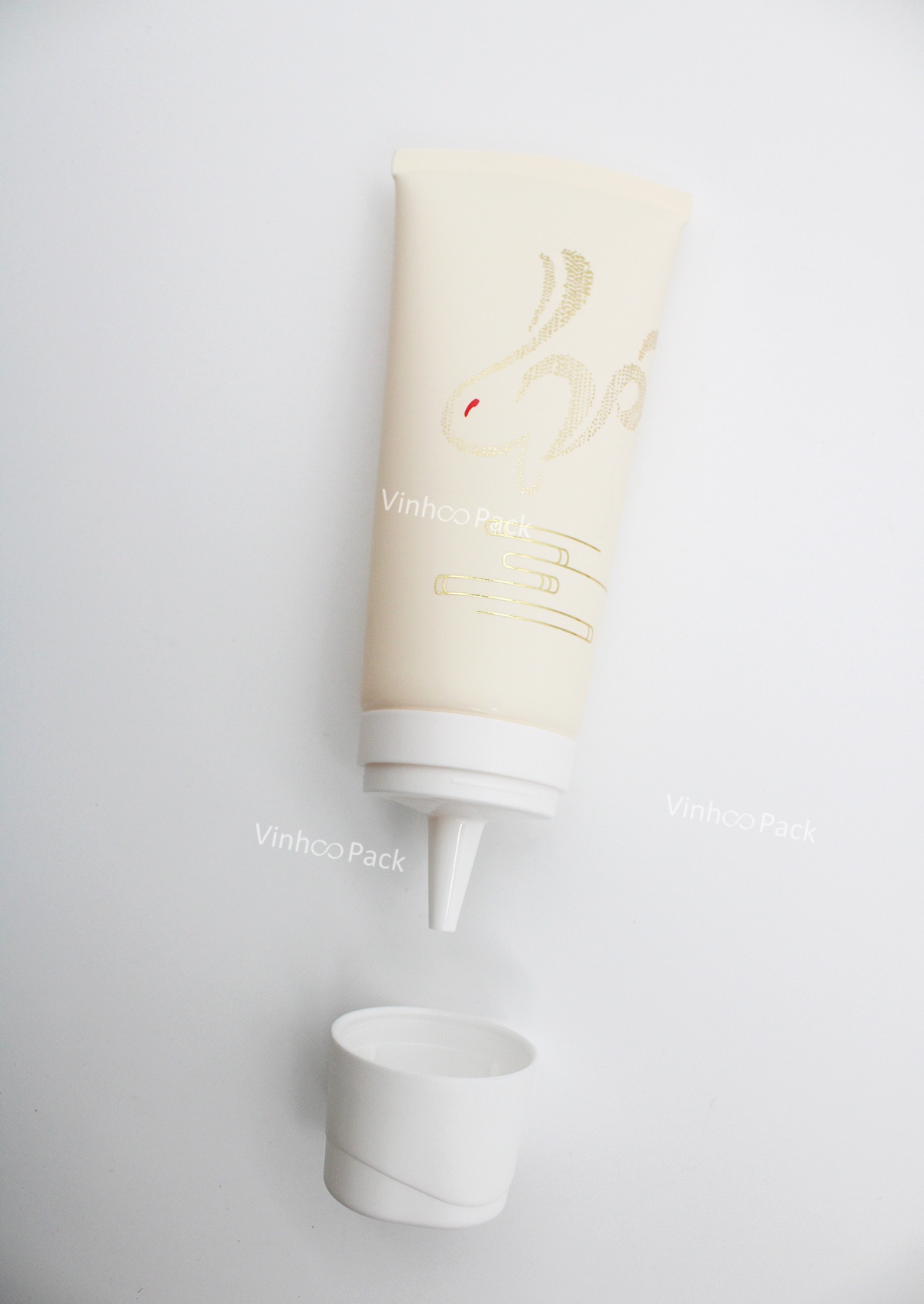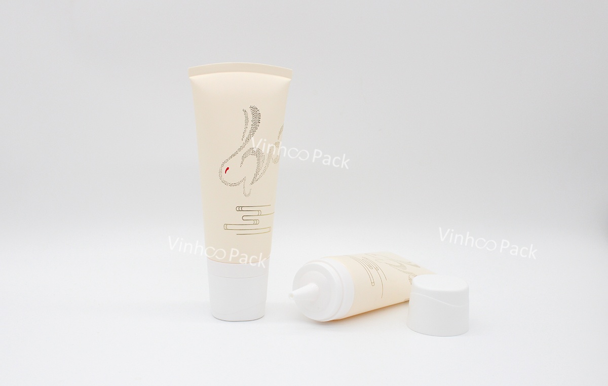 Round tube with nozzle and snap on cap,suitable for hair care.